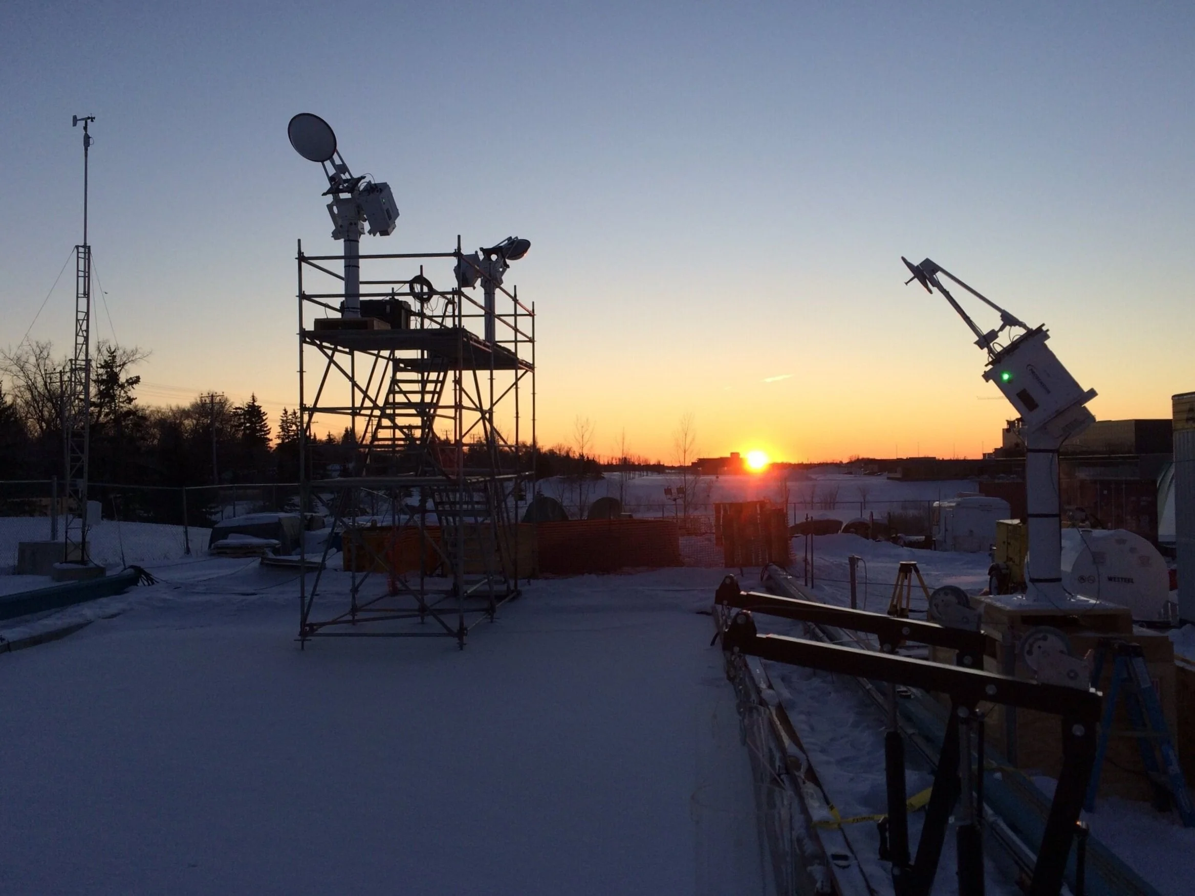 Sunset at SERF. Two radar instruments overlook the tank and take automated measurements every eight minutes.